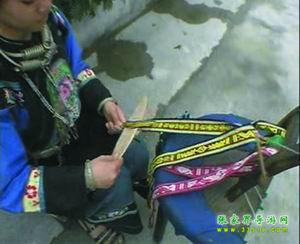 苗家花帶,織花帶,是苗家姑娘最盛行最喜愛(ài)的一種習(xí)俗。在苗家,從女兒長(zhǎng)到七八歲起,母親就要叫他做針線(xiàn)活,待到十歲左右就交他學(xué)織花帶,如果母親技藝不高,還要請(qǐng)寨子里花帶技術(shù)最高的婦女來(lái)教。又得女孩子,從母親或姐姐那里初步學(xué)到織花帶技術(shù)后,就在本寨子邀同齡伙伴,三五個(gè)在一起,互相切磋技藝。待到編制技術(shù)日趨成熟后,姑娘也大了,就往往一個(gè)人躲在房中編制出色鮮艷的花帶,風(fēng)險(xiǎn)少女的情愛(ài)。苗家姑娘,往往拿自己編制的花帶作為禮品相贈(zèng),特別是姑娘有了意中人,就吧花帶作為愛(ài)情的信物相贈(zèng),以表示以身相許,愛(ài)情純貞。