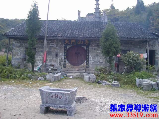 (天門山寺)天門山寺最早建于唐代,古稱云缽庵、靈泉院、嵩梁堂,明代時(shí),因擇址不當(dāng)而屢遭風(fēng)摧又常遭水荒,才將天門山寺從東部山頂遷移至此。以前這里古木參天,濃蔭蔽日。古寺門楣上刻有“天門仙山”四字,大門兩邊的對聯(lián)是:“天外有天天不夜,山上無山山獨(dú)尊”,傳為李自成部將野拂撰書。進(jìn)門為大佛殿后面有觀音堂,兩邊六間平房,最后一棟是祖師殿,規(guī)模宏大。民間概括為“三進(jìn)堂、六耳房,磚墻鐵瓦鍋如壙”。山寺原建筑十分講究,飛檐翹角,雕龍畫鳳,并塑有佛道神像菩薩等。還有大鼓一面,千斤大鐘一口,一座七級石塔和一個(gè)大化錢爐。據(jù)碑刻記載,自清乾隆至民國五年的163年間,天門山寺共修葺過七次,香火曾盛極一時(shí),湘鄂川黔邊境十多個(gè)縣的信徒絡(luò)繹不絕,都來這里進(jìn)香拜佛。現(xiàn)天門山旅游股份有限公司正在大規(guī)模地修復(fù)天門山寺,昔日的繁華又將重現(xiàn)。