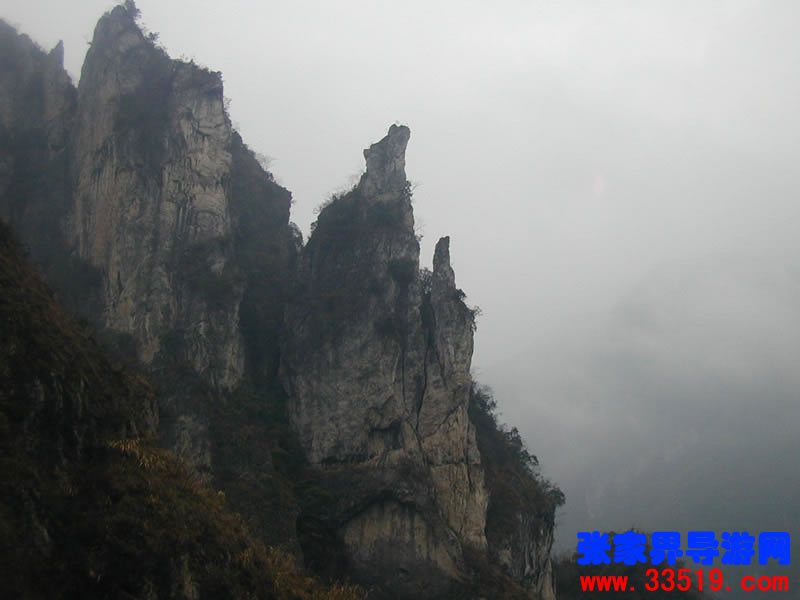 南天門——沿著河水一直往里走,在溪水最深處,可以仰望那隱藏在云霧里的南天門。它并不同于天門山的天門洞。它獨立于眾山之中,就像真正的通天大門,當你翻過了前面的天門洞,卻還要再通過這座南天門,方可真正羽化登仙。南天門旁邊的幾座山峰,也都生的奇形怪狀,倒也天然形成了一個個大大小小的自然景觀。宛如天兵天將般守衛(wèi)南天門的將軍巖,象征南天門仙家氣息的蠟燭峰等,散落在四周,構(gòu)成了一個整體的山體奇觀。