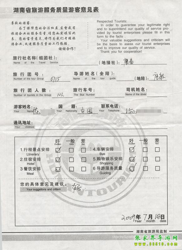 - 游客夏先生為表揚導游李姣姣寫來表揚信致我張家界... [14811]