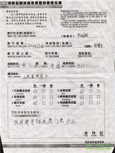 - 2011年10月5日黃先生一行17人旅游質(zhì)量反饋 [7847]
