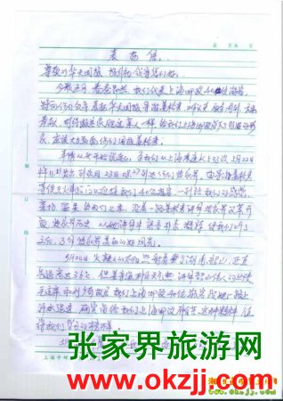 - 游客夏先生為表?yè)P(yáng)導(dǎo)游李姣姣寫來表?yè)P(yáng)信致我張家界... [14811]