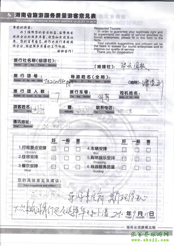 - 游客夏先生為表?yè)P(yáng)導(dǎo)游李姣姣寫(xiě)來(lái)表?yè)P(yáng)信致我張家界... [14811]