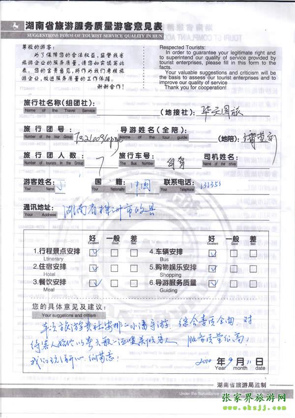 - 游客夏先生為表揚(yáng)導(dǎo)游李姣姣寫來表揚(yáng)信致我張家界... [14811]