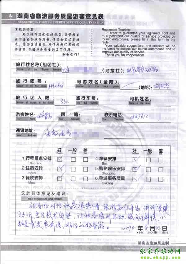 - 游客夏先生為表揚(yáng)導(dǎo)游李姣姣寫來表揚(yáng)信致我張家界... [14811]