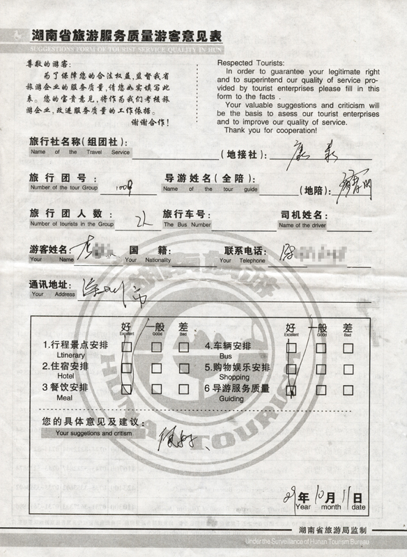 - 2011年10月5日黃先生一行17人旅游質(zhì)量反饋 [7847]