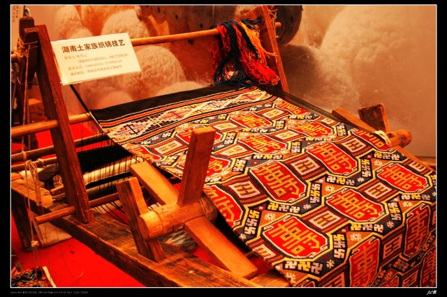 張家界織錦 在1400多年前,湘西一帶民間就有織錦技術(shù),但古代織錦專門為皇宮貢品,后來才在民間生活中少許流傳。改革開放以來,大庸市旅游事業(yè)興起,織錦技術(shù)得到很快發(fā)展,現(xiàn)已有工廠成批生產(chǎn),產(chǎn)品大量上市。 大庸張家界民族工藝廠生產(chǎn)的土家織錦品種多樣,有掛屏屏風(fēng)等。其畫面內(nèi)容除了描繪大庸市的民族風(fēng)情、山川景物外,還有飛禽走獸、花卉蟲魚等,其構(gòu)圖新穎簡潔,用色大膽明快,編織工藝精湛,既有水彩畫的明麗清秀,又有油畫的渾厚氣質(zhì)。是獨(dú)具一格、極富裝飾美的工藝精品。目前,產(chǎn)品不僅已在國內(nèi)30 幾個著名風(fēng)景區(qū)銷售,而且同日本、泰國、澳大利亞、臺灣等15個國家和地區(qū)的廠方簽訂供銷合同,1990年被定為亞運(yùn)會專供產(chǎn)品。